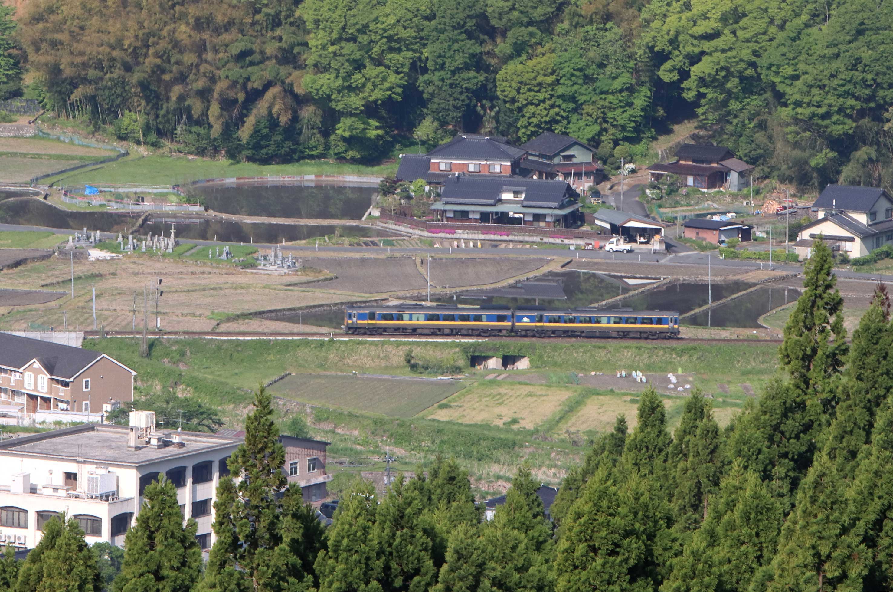 *横に停まっているのは、特急の通過待ちをしている普通列車。山陰本線は国鉄色のキハがまだ現役で普通に走っています。