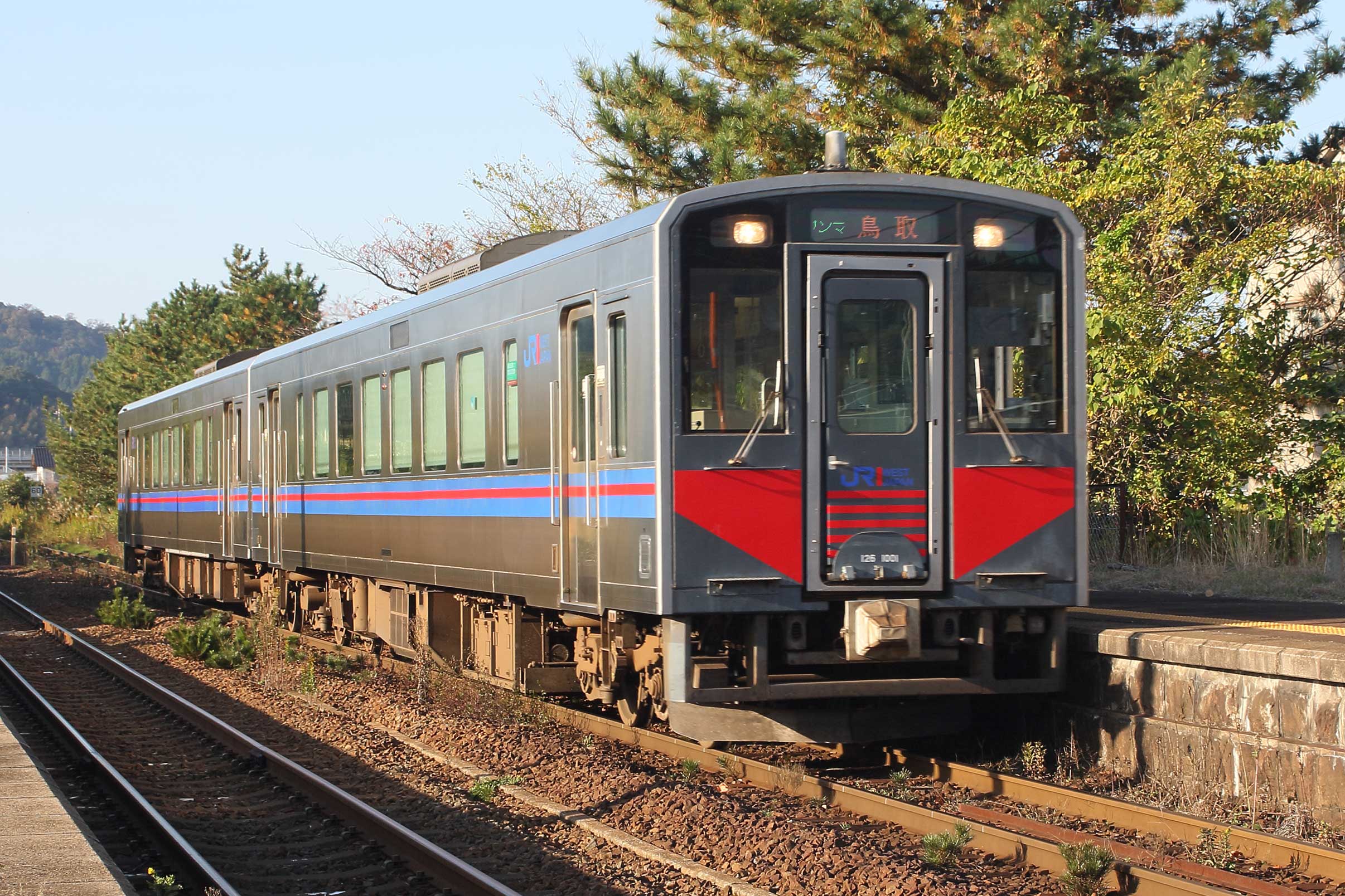 山陰本線にまだ現役で国鉄キハ車両がふつうに走っていますので、改めての特集です。ただ、新しさも紹介したいので、2000年から投入された車両キハ126系・121系を冒頭で紹介します。25年経ってだいぶ見慣れてきました。