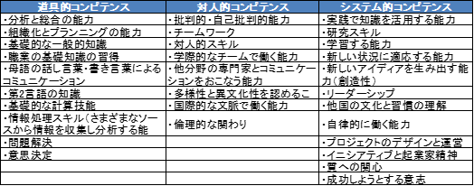 表2 チューニングプロジェクトで検討された3領域のコンピテンス