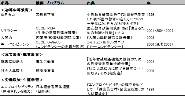 表3 日本で提示された「能力概念」(1996~2007年)