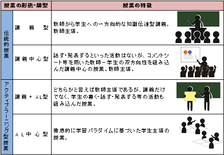 図1 アクティブラーニング型授業の位置づけと類型
