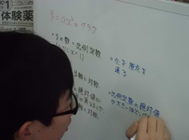 また、ホワイトボードはみんなの考えを共有するときの便利なアイテムである。(図3)私はキャスター付きの小さなホワイトボードにしてみた。座りながら書けるし、黒板同様書いて見せながら説明しやすいと考えたからである。