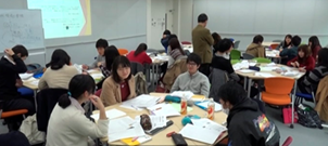ほとんどすべての課題がグループ活動の素材となっている。自分で考え、まとめたものが常に仲間との学びの材料となり、仲間の学びに役立っていく様子を直接、間接に見聞きする中で、「授業に参加して学ぶ」ということの意味を再認識する学生は多い。