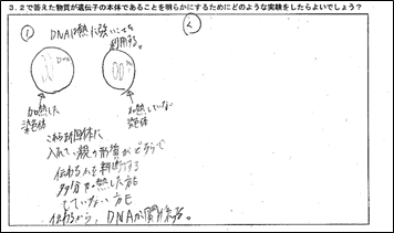 知識を身につけることはもちろん、その身につけた知識をどのように使って、答えのない問いを解決していくのか。これからの社会ではそのような力が大切になってくると考え、生物基礎の授業においても、 基本的な知識を身につけるための授業の中に、それらを活用する場面を各単元1つはつくれるように意識している。本時では、「遺伝子の本体がタンパク質なのかDNAなのかを明らかにするため、 どのような実験をしたらよいか」という課題を解決するため、与えられた材料をもとに、対話を通して思考を深めていくことを目標とした。