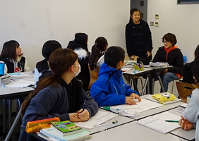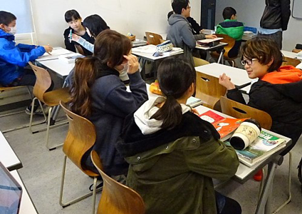 本校では、日本語が弱い帰国子女や外国籍の子どもも多いため、クラスの中で日本語や英語がその子に応じてうまく使え、しっかりと学習できる環境をさらに整える必要があると思います。特にグループでの議論などの際、言語は非常に重要です。現在は、使用する言語によってグループ編成をしています。ある程度の効果はあると感じていますが、さらに良い方法がないかも検討中です。