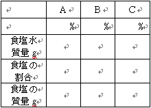 4 10%の食塩水を150g作る。何gの水に、何gの食塩を溶かせばよいか?