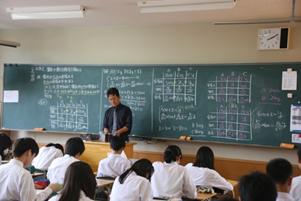 今回の研究授業の前に教科で事前研修を行っている。この事前研修では、授業での課題をどうするのか、主発問はどこにもっていくのかなどの議論を行った。当初は、速度の問題からx、yの決め方によって連立方程式の作り方が変わることを元に、より深い学びを目指したが、問題の解決方法がある程度決まってしまう課題でもあったため、速度の問題については、解法の学習に終始した。それに対して今回の濃度の問題は、基本的な解法は決まったものであるが、問作において値の設定のしかたが様々にあり、具体的に濃度を混ぜ合わせる現象としてもイメージしやすく、深い学びにもつながるのではないかと課題を設定した。事前に他の学級での数学科の参観において更に議論を行い、当日の授業となった。しかし、数学教師が問題を解くのとではやはり生徒と思考の違いもあり、予想していたところまでは課題を深められなかったことは、事前研修の甘さであったかと考えられる。また、事後研修では、実際の授業をうけて、授業展開の工夫や、課題提示の様々な方法について再度確認をした。反省とするべきところは、事前に模擬授業を行い、生徒目線での質問や課題解決を行うべきであった。そうすることで、生徒への課題提示や生徒の解答に対する更に深い課題の投げかけにつながるのではないかと確認した。また、正しい解答等考え方に固執するがあまり、ある程度無難な正しい解答が多く、間違ったり、不適切な値がでない状況でもあった。問題作成においては、何気なく設定した値がどのような結果になるのかを予想させ、そして修正させる中で学ぶことも多いと改めて確認することができ、この点が指導の上で不十分であったと言える。授業の全体的な流れとしては、 課題を解決できる方法までは学習が進められ、生徒もほぼ理解することができていたが、その学習をもとにした「主体的対話的で深い学び」につなげるには、まだまだ深く考えていかなければならない。