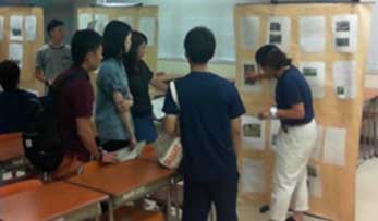 最後にポスター発表を行い、学生を4つに分けて、交代で発表させ、残りの学生に質問をさせた。ポスターは発表の前日までに廊下に掲示して、あらかじめ全部を読み、採点させた。学生には自分が評価を高くつけたポスターを選び、それへの質問を考えるようにさせた。質問が多い発表こそ優れた発表で、質問がない発表は評価が低い発表だと学生には伝えた。単に学生に質問を義務づけるだけだと、つまらない発表のあら探しに終始し、どうでもいい質問しか出てこない。