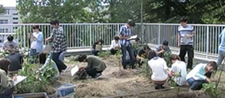 3.屋上緑化での野菜栽培を通して、グループ活動、観察記録、報告、ポスターによるプレゼンテーションと質疑応答を行った。