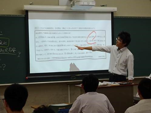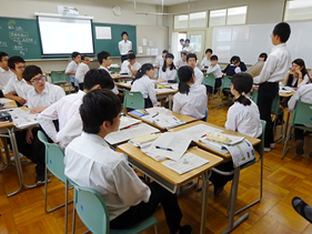 生徒に発表させることがゴールではない。発表させるまでの展開も重要であるが、発表した後に生徒の意見を集約していく作業も、教員の腕の見せどころであろう。今回は、生徒の発表に一つ一つ質問を返したり解説を付け加えたりと取り上げたが、すべての生徒の発表を終えた時点で、「では、すべての意見を踏まえた上で、どのようなことが言えるのか」といった観点で整理することを疎かにしてしまった。教員自身が用意しているまとめ(解答)に話を移す材料として生徒の意見の中の注目すべきポイントを拾い上げるなど、授業の中で生徒の発表内容を効果的に利用することが理想であったが、不手際に終わった。「生徒たちの力で自分たちの答えを導く」という形が、アクティブラーニングの土台であると再確認させられた。