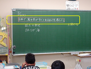 意識して交流や話し合いに取り組むことができた。その結果、海流を示す矢印の太さに着目したり、太平洋側と日本海側の様子を比べたり、主な漁港の位置や水揚げ高、