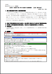なお、本校ではアクティブラーニング型授業を行うために「学びのデザインシート」を活用している。逆向き設計で授業を構想し、問いと生徒がたどり着いてほしい成果、そのために必要な材料などを整理するのに役立っている。以下は今回の授業の「学びのデザインシート」である。