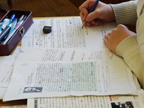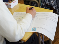③の問いに関する答えをグループで作る過程でも、声を出しながら協働する姿が見られた。中にはわからない漢字についても班員に聞きながら、きちんとした文章で書こうとうする意識の高い班があった。