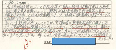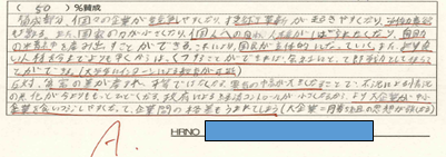 「よりよい社会をつくるためには、政府の経済活動(経済への介入、ルール作りや規制など)を少なくして、利潤を求める個々の企業がより自由に活動できるようにするのがよい」という意見に対してあなたはどう思うか、について授業を受ける前の自分の考えをワークシートに記入してもらう。
