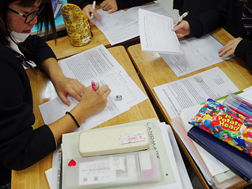 日本語で、この章を通じて考えてほしかったことは「なぜ」戦争をしてはいけないのか生徒自身が考えていかなくてはいけないということであると説明した。そのために歴史を学ぶことの大切さを伝え、授業を終えた。