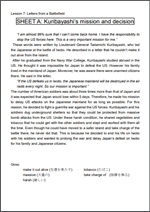 教科書で学んできたことを基に、生徒は栗林の使命や彼の決断を考慮し、英語でライティングをする。(WORKSHEET 1 (大きく))