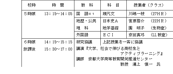 内容:学校概要説明、授業改善について、授業参観(生物)、研究協議
