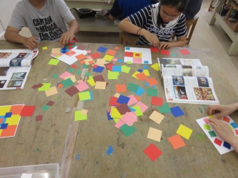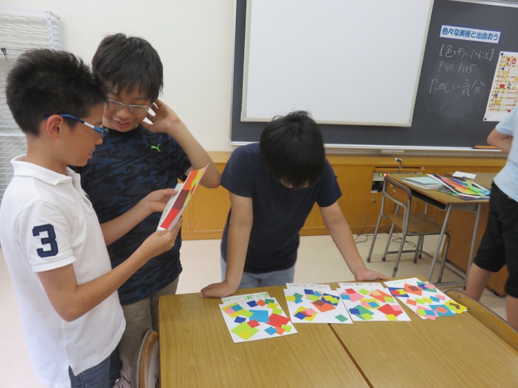 「具体的なものを使わずに,色(10色・正方形)だけで『楽しい気分』というのを表現することができた。つまり,'色'というのは気持ちを表現できる。心の気分を表せるというのが大きな特徴」(生徒E)