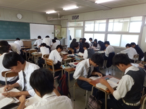 - 「さあ、どうぞ」という掛け声をかけると、生徒は各自課題に取り組み始める。