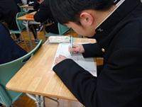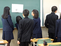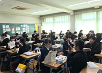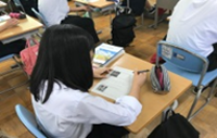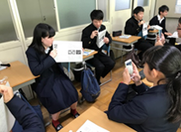 本授業では生徒が英語を用いた「やり取り(対話)」の場面を多く与えることに留意しています。しかし、トピックが難しい、生徒に背景知識が少ない、または話を展開させる言葉(英語)を知らない場合など、どうしても日本語に頼ってしまう場面が多く見受けられます。そのため、今後は発話をスムーズにさせるように、丁寧なスモール・ステップを踏みながら、かつ生徒の発表語彙(話せる・書ける語彙)を充実させ、生徒同士のやり取りを可能な限り、英語だけを用いたものにすることをめざします。