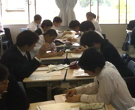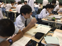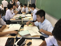 次に②について。我々桐蔭学園の教員がAL型授業の研修に取り組む中で、最も大切にしてきたのが「活用Ⅱの課題」の設定である。 「活用Ⅱの課題」とは、その教科での学びを生徒の実世界(実社会、実生活、自己)に結びつける課題のことであるが、これに取り組む中で「なぜその教科を学ぶのか」「その教科が実世界にどのように 繋がっているのか」について生徒自身が考え、気付くきっかけになる。教科を介して生徒と社会が繋がる学びの場であると言えよう。