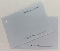 多くのクラスで実践されているのが、この1分間スピーチである(図表4)。 全国的にも朝のスピーチ活動は実践されているであろうが、桐蔭学園では今後の成長に繋がる「二つのライフ」(溝上,2018)を意識したテーマ設定にすることで、 「将来への見通しを持ち、現在の自分を見つめる」機会としている。したがって、この場ではスピーチの上手下手は一切不問であり、どれほどたどたどしいスピーチであったにせよ、 自分の将来への見通しを語り、それに向けて今何をすべきか、そしてそれがどのくらい実行できているかを他者に向けて語れることが重要なのである。「外化」することによってメタ認知力を高め、 より自分の人生を主体的に捉えて生きていく力を育むことを目指している。また、一方で聴衆たる生徒たちに関しては「傾聴し、承認する」という姿勢の重要性を説明し、 よき聴衆であることを求めている。具体的には、話し手の目を見、頷きながら聴き、最後には承認の拍手を送るといったところであろうか。なお、承認メッセージを届けるツールとして「メッセージカード」 (図表5)も活用している。