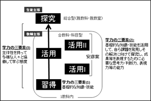 「教科学習における『活用型』学習の中で、やや低次の質の『活用力』をつけることを通して、『探究型』学習における質の高い『活用力』の確実な育成に努めてほしい。」