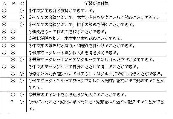 A=基礎的な知識・技能 B=思考力・判断力・表現力 C=主体性・多様性・協働性