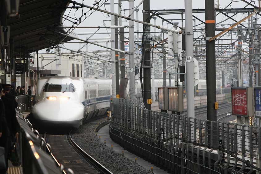 名古屋東京方面14番線は、1つの新幹線撮影名所だ。入線レールがホームから見るとカーブしていて、編成写真になるからだ。午前中が正面、側面ともに順光だ。