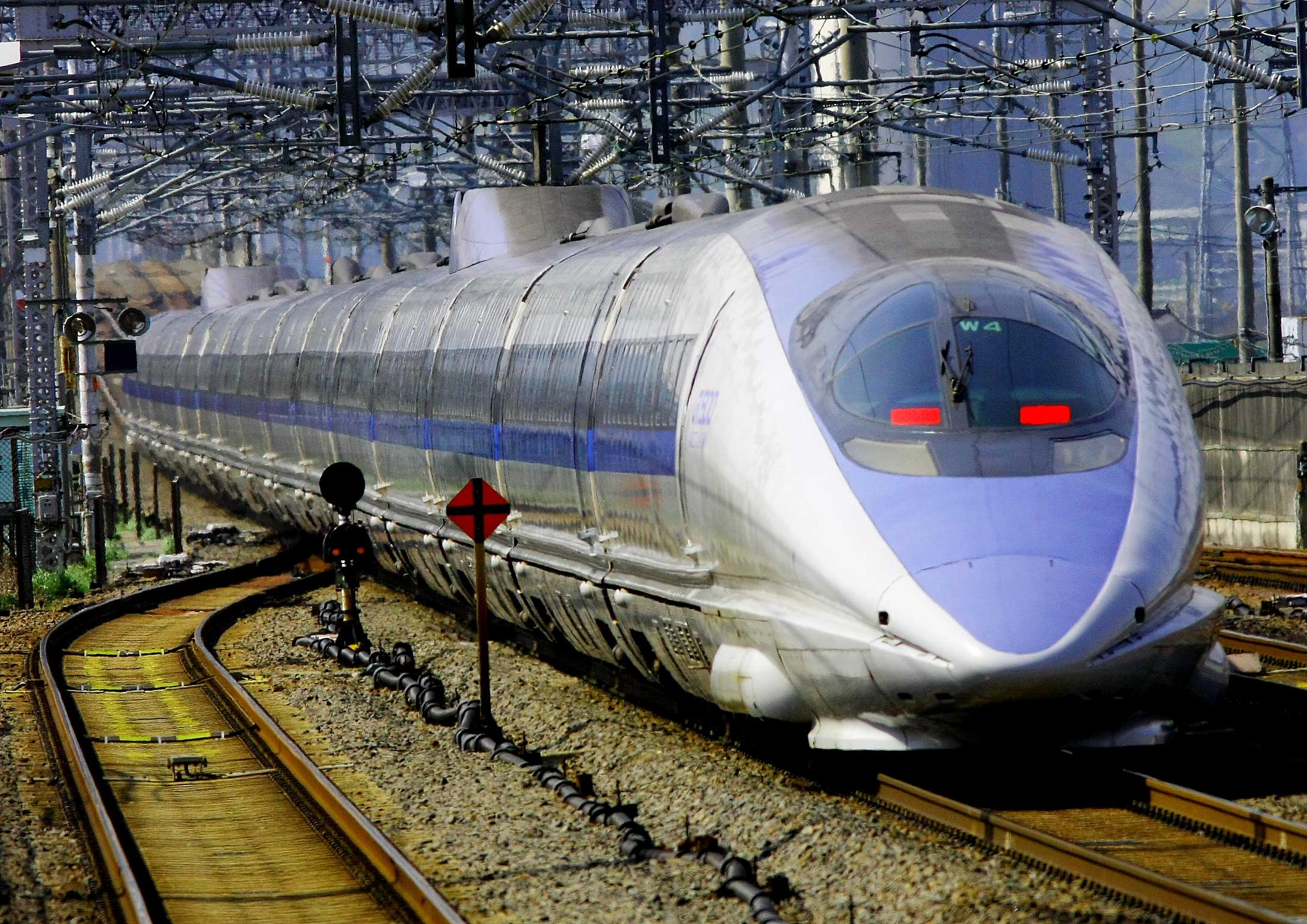 1997年に登場したJR新幹線で、世界最速の300km/hに肩を並べた車両だ。高速化のため、丸い車体断面をもち、尖ったノーズを持つスタイリッシュな車両。しかし、そのせいで車内の環境が犠牲になったとも言われる。その後の700系、N700系新幹線が車内の快適さを重視して開発されたのと対照的である。東海道・山陽新幹線のなかで唯一シルバー&ブルーラインという色つきの新幹線で異彩を放っている。