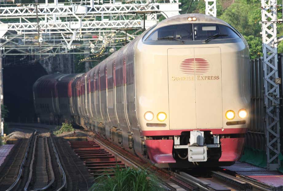 さて、東京行きの上り「サンライズ出雲」は、朝7:08に東京へ着く。走行写真を撮ろうと思えば、海、山に囲まれた熱海、真鶴、根府川あたりが代表的だが、このあたりを通過するのは6:00前と時間がはやい点が難点だ。この時間帯で撮影ができるのは夏至から夏にかけて、というのがセオリーだが、同時にこの時期は梅雨の時期でもあって難点に拍車がかかる。良い太陽の光を得る確率はけっこう低い。
