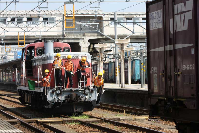 *最近、女性の駅員や車掌をよく見る。しかし、貨物作業員ははじめて見た。かっこよくてカシャカシャ撮ってしまった。DE10のデッキに乗れて(写真9も参照)うらやましかった。