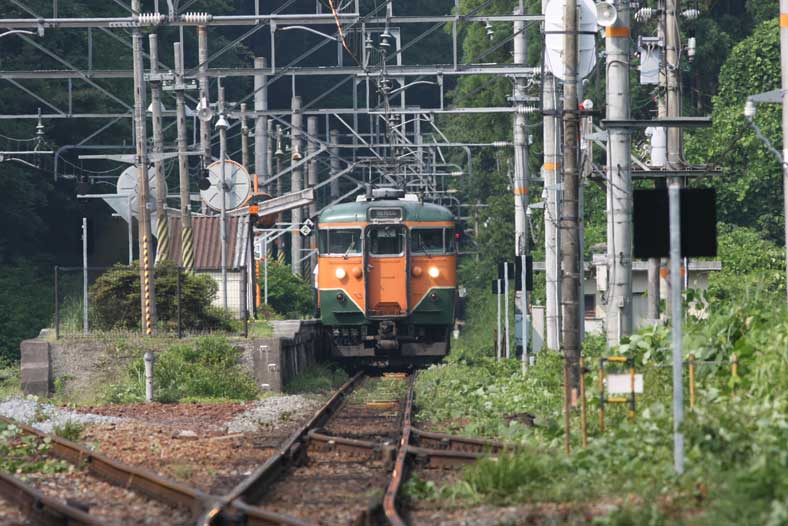 <写真1>山陰本線鍼灸大学前駅 113系普通列車 2008年7月
