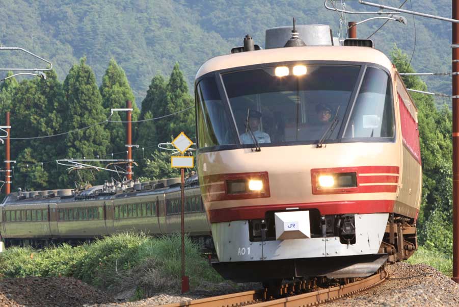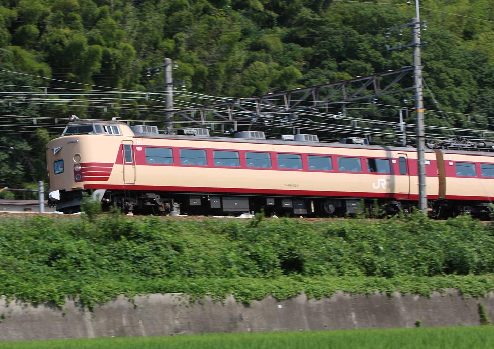 特急「雷鳥」のパノラマ車両が美しい構図