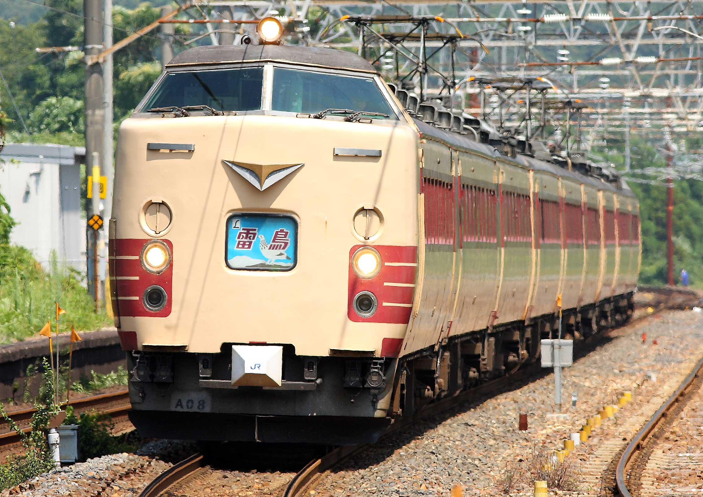<写真1>北陸本線新疋田駅通過 485系パノラマグリーン車特急「雷鳥」 2008年8月