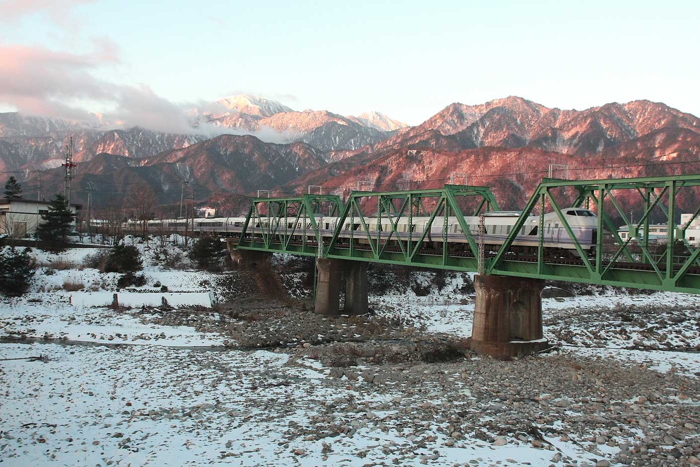 冬は雪だ。山から緑が消えて走行写真の迫力が落ちても、雪さえあれば迫力満点だ。しかし、撮影に行く時間がうまくとれないので、今回が最初で最後にならないように祈りつつ・・・。今回は、北アルプスのスキー場で有名な梁井・白馬あたりの大糸線での、新宿発特急「あずさ」「スーパーあずさ」の撮影紹介である。