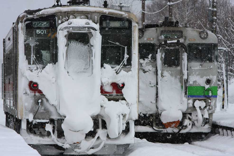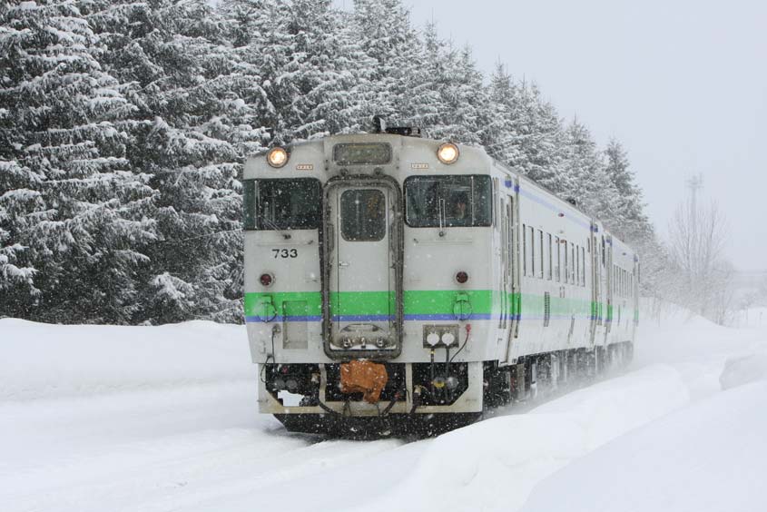 ホームページ作成用のコンピュータが壊れ、使用していたHPソフトが生産中止になっていて、しばらく難儀していました。もうすっかり春ですが、あと2回ほど雪お付き合いください。「やっぱり雪ですね」第3弾は、北海道旭川と稚内とを結ぶ宗谷本線、そこを走る「スーパー宗谷」と「サロベツ」です。北海道のなかでも豪雪地帯の一つ。