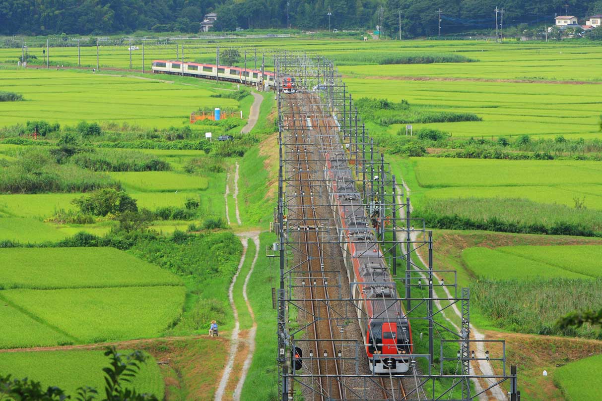 *佐倉駅から30~40分、一山越えたところにあるこの田んぼ地帯は、成田線の代表的名所。この日も鉄ちゃんがうじゃうじゃいました。ただ、台風の影響で、光が差していたのは7時前から8時前まで。1時間しか撮影になりませんでした。この写真は、帰りの山越えの途中。