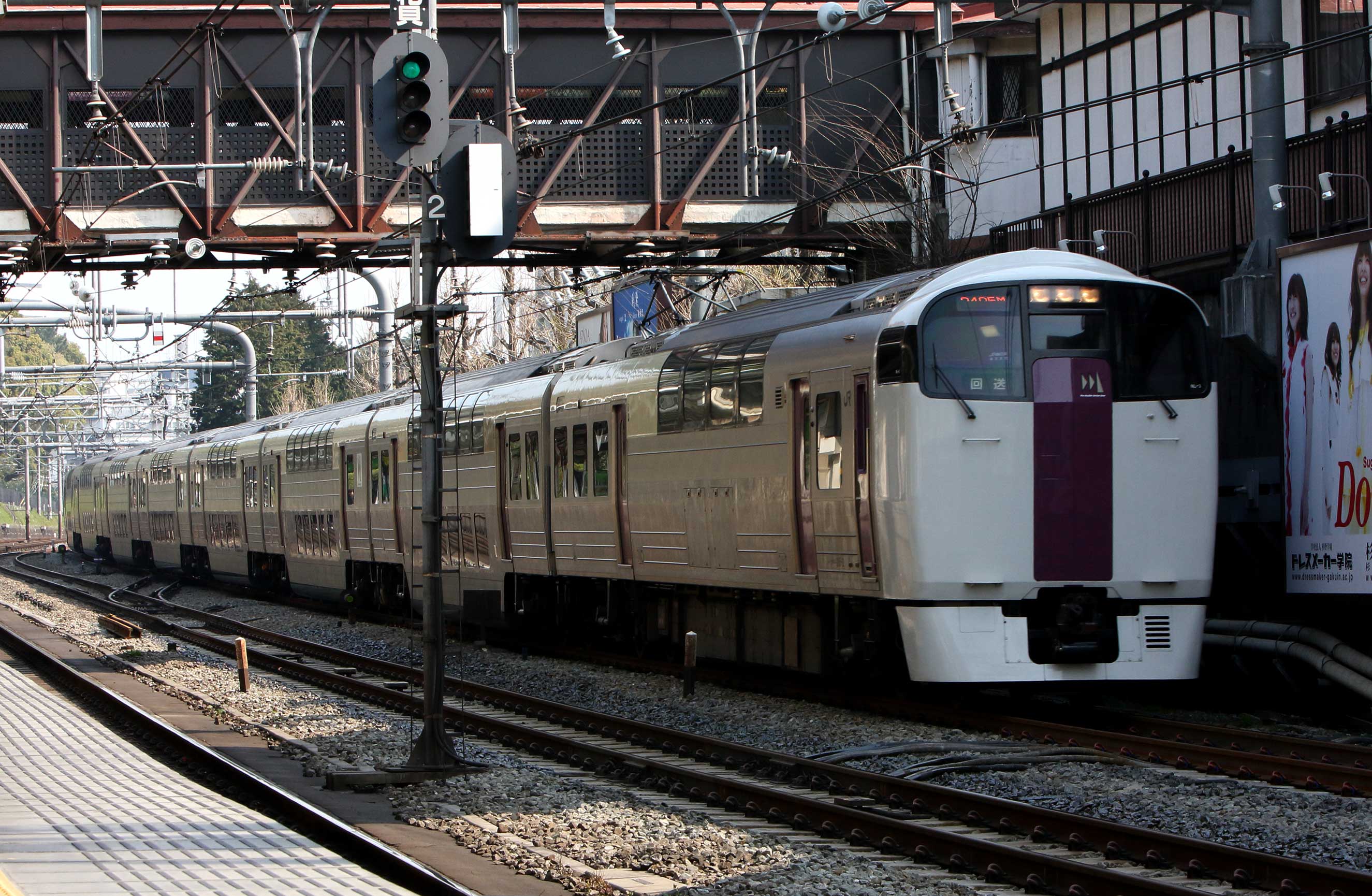 *総武快速線(東京-千葉)、総武本線を通って成田空港まで行く快速列車。2階建グリーン車両がひときわ目立つ。