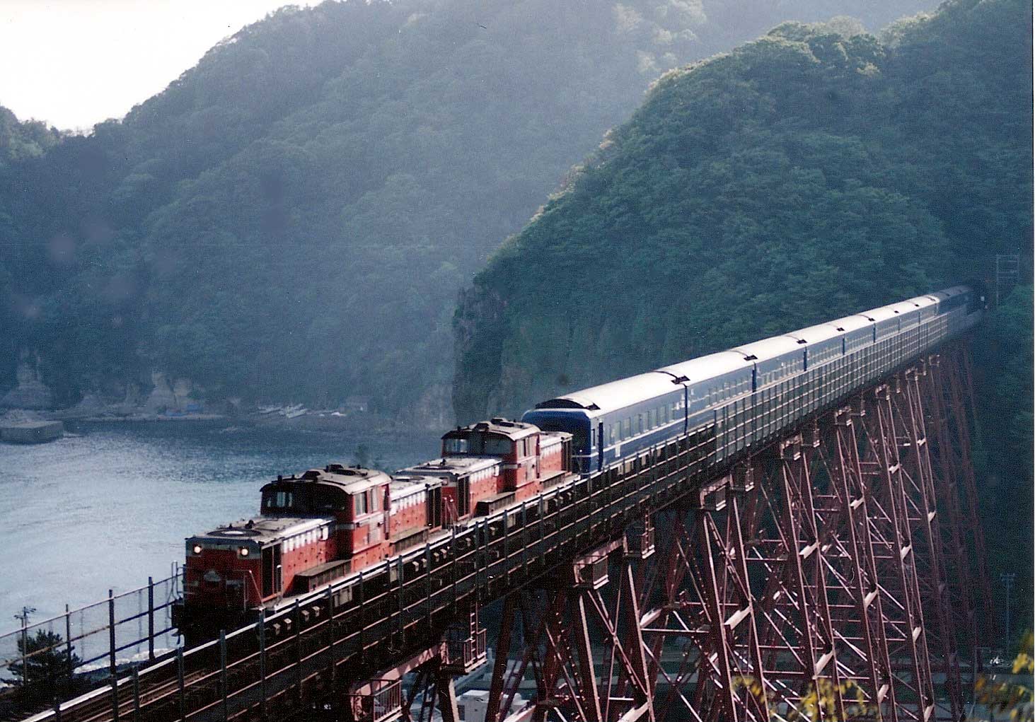 <写真5>山陰本線餘部-鎧 DD51重連牽引+14系客車、寝台特急「出雲」 1994年5月