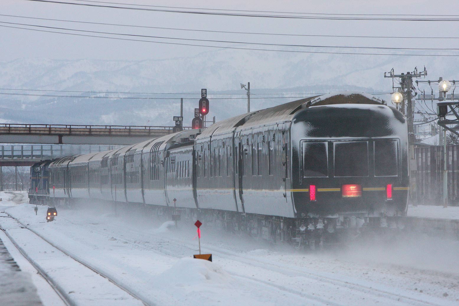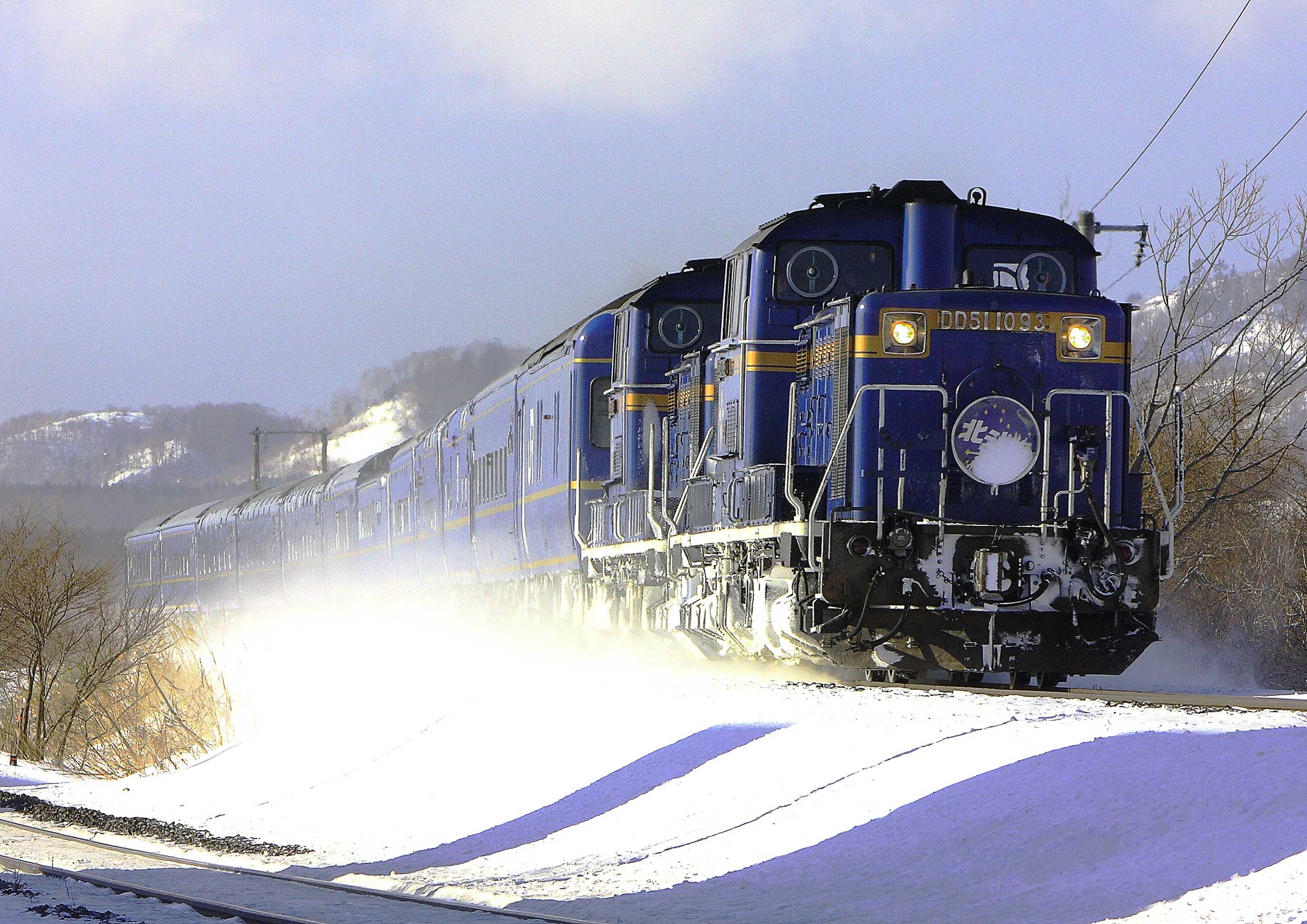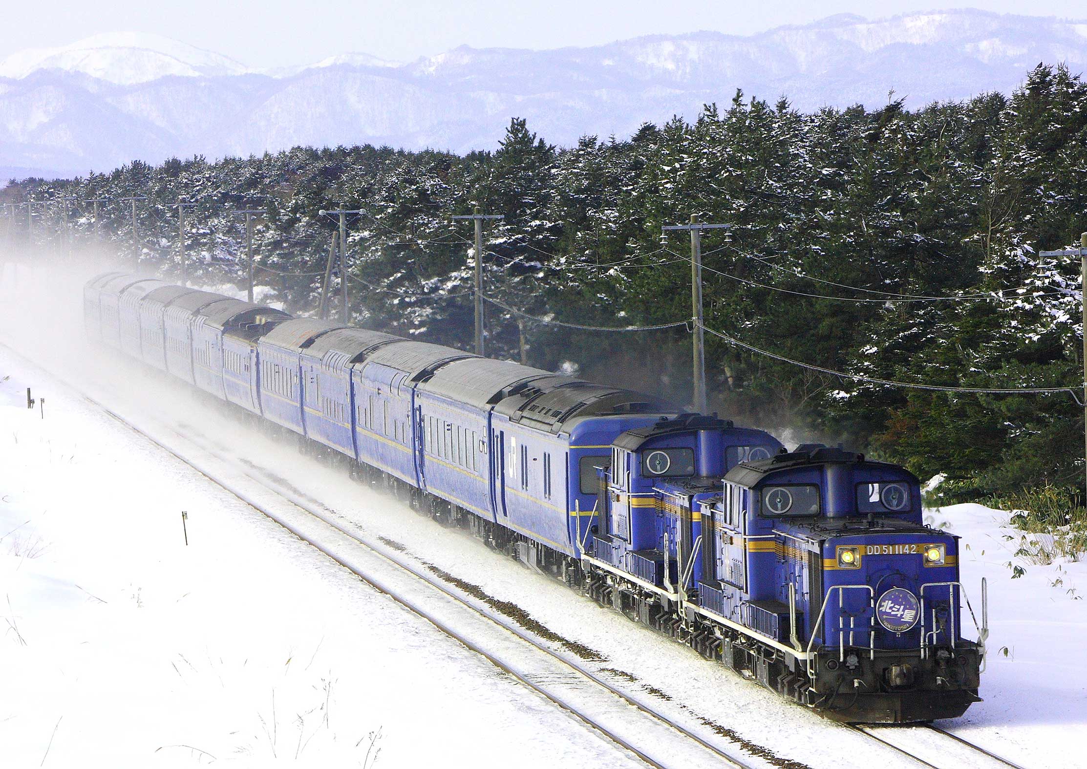 「北斗星」のような重厚車両に雪と快晴が加わると、もう無敵ですね。ほかの写真がしょうもなく見えてきて、撮影した後は少し複雑な気分でした。