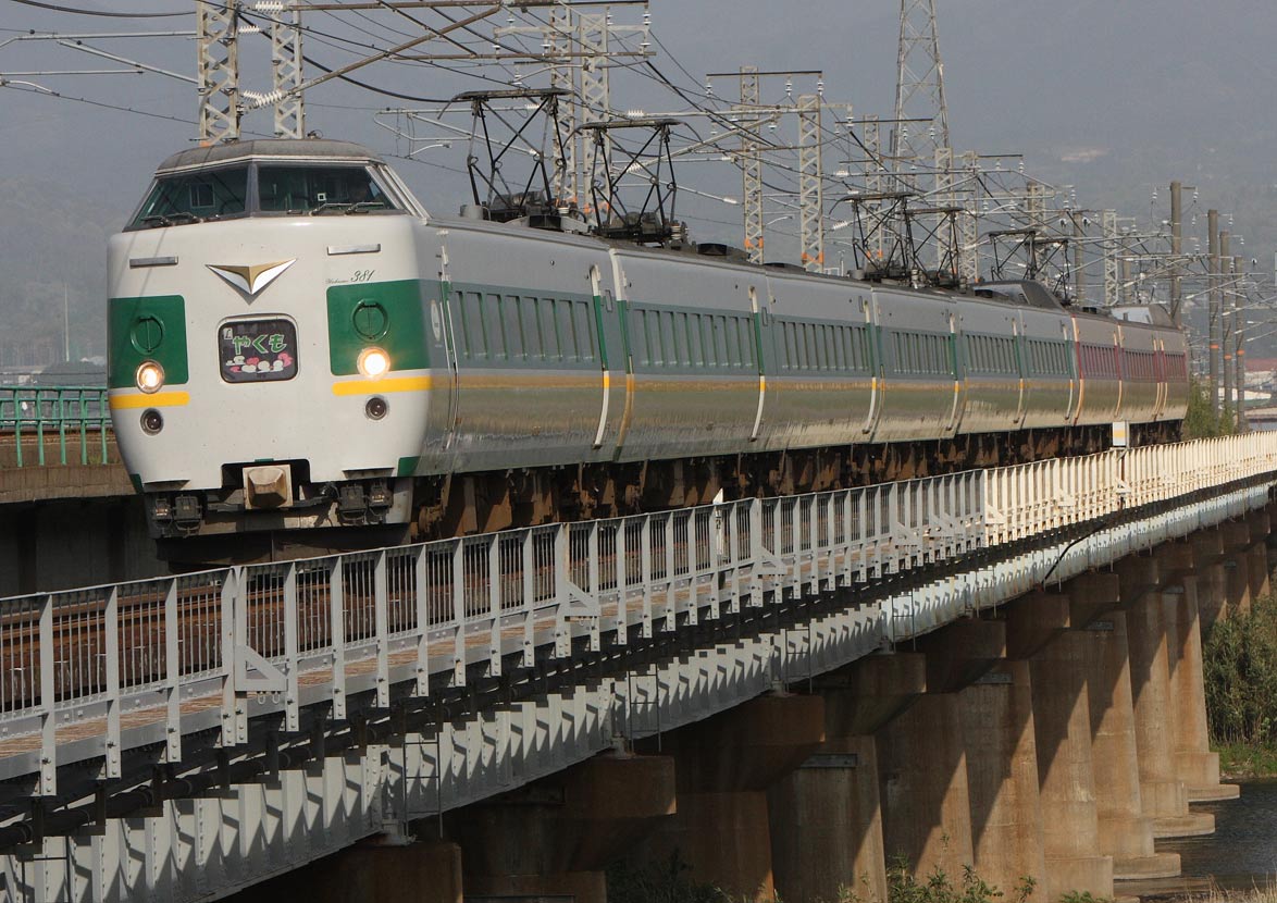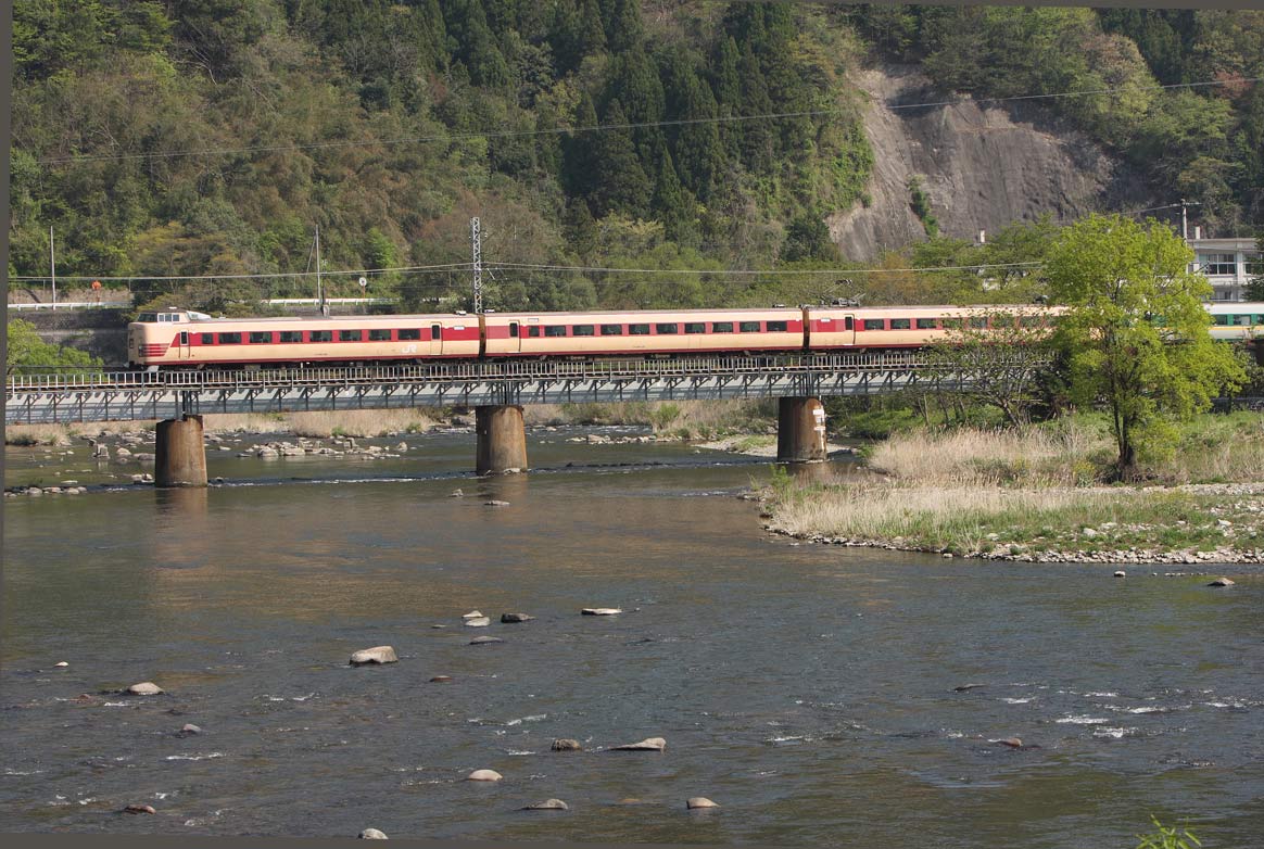 *ゴールデンウィークのような多客期には日根野電車区(和歌山)所属381系を借り入れて増結!堂々たる9両編成。しかも国鉄色だ。