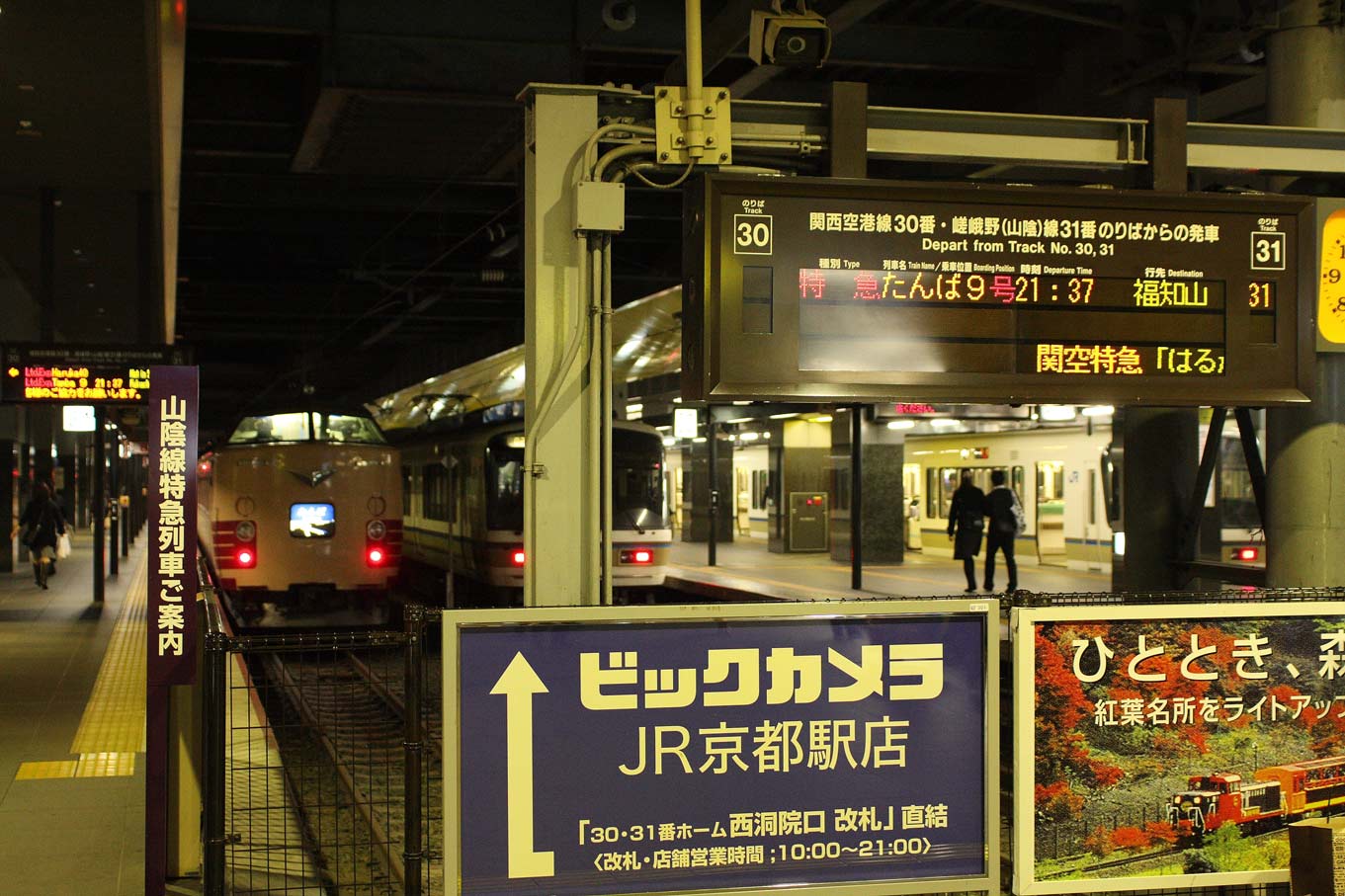 *2011年3月のダイヤ改正で、山陰本線特急「きのさき」は残った。福知山駅では<写真10>の特急「こうのとり」と同じホームで待ち合わせで横並びとなる。国鉄色車両がこうして待ち合わせで横並びになるシーンは、たぶんもう福知山駅でしか見られないのではないか。