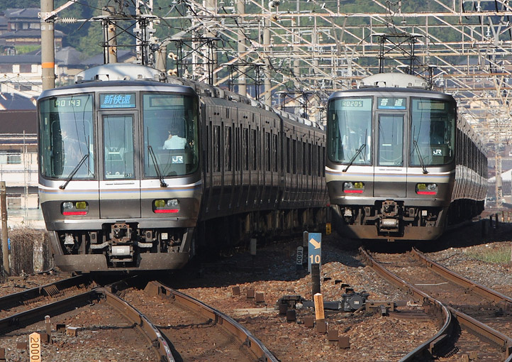 *右は223系の初期型。ライトが1つであるのが特徴。関西空港へのアクセス用として1994年に開発。そう言えば、最近205系、和歌山地区であまり見ないなあ。