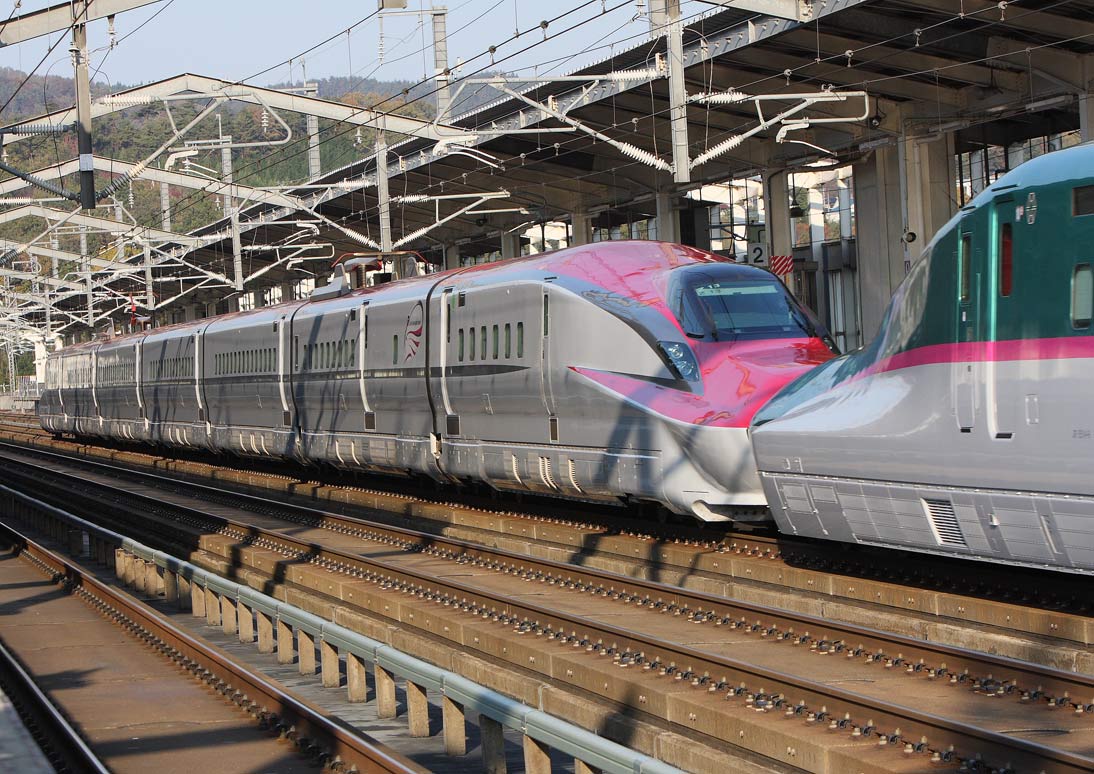 <写真7>東北新幹線白石蔵王駅通過 E5系「はやて」+E6系「こまち」 2013年11月