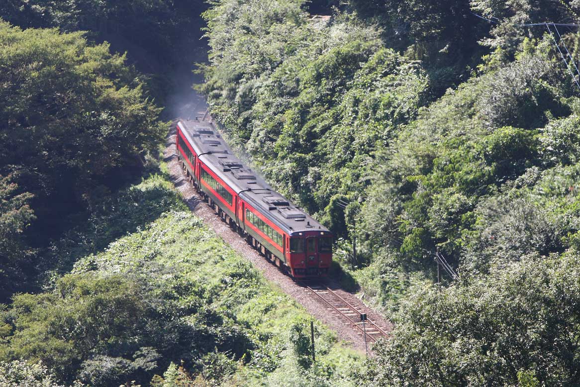 <写真2>久大本線湯平駅 キハ185系特急「ゆふ」 2014年9月