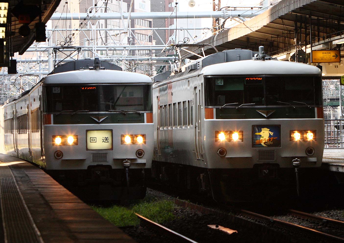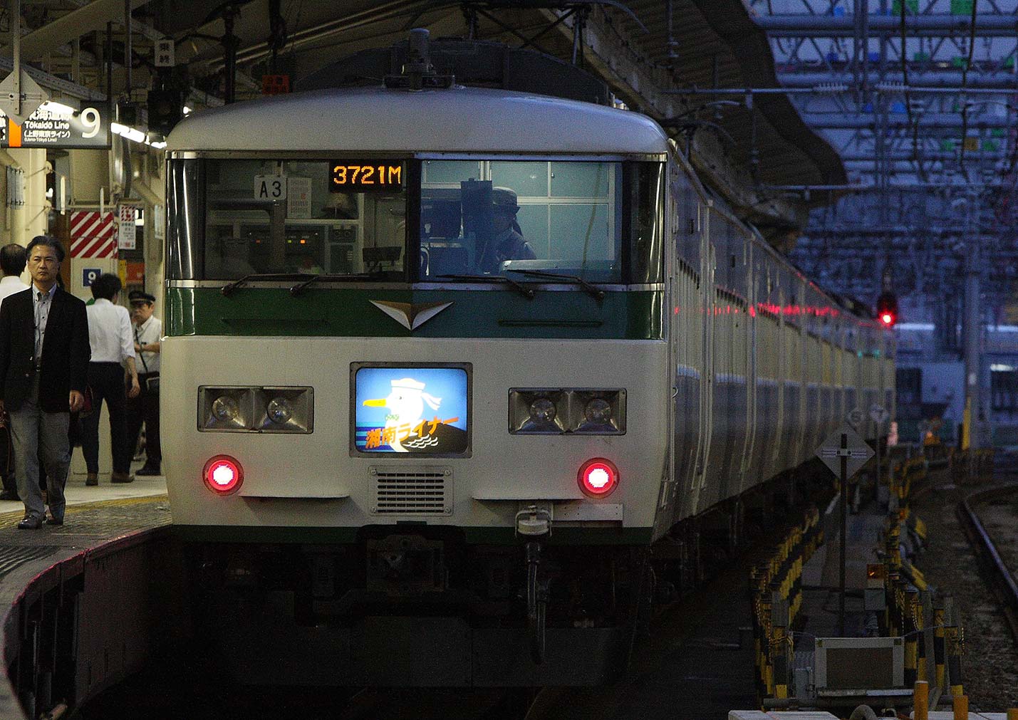 185系と言えば、東京-伊豆の「踊り子」、上野から高崎線の新特急「草津」「あかぎ」で1980年代登場したというのが私の昔の印象。それもそろそろ引退モード。古くなった車両を朝の通勤特急のような形式で使用するのはよくあるJRの戦略だが、首都圏ではこの185系特急車両を使用して朝夕の通勤列車ホームライナーとして、小田原から品川や東京、新宿を結ぶ。ライナー券は510円。ちなみに、ライナーにはオール2階建車両215系も使用されている。これは1990年はじめから湘南ライナーとして使用されている。東京-熱海を結ぶ快速「アクティ」にも使用されていた。1990年代初頭には215系グリーン車だけの増結姿も見られた。