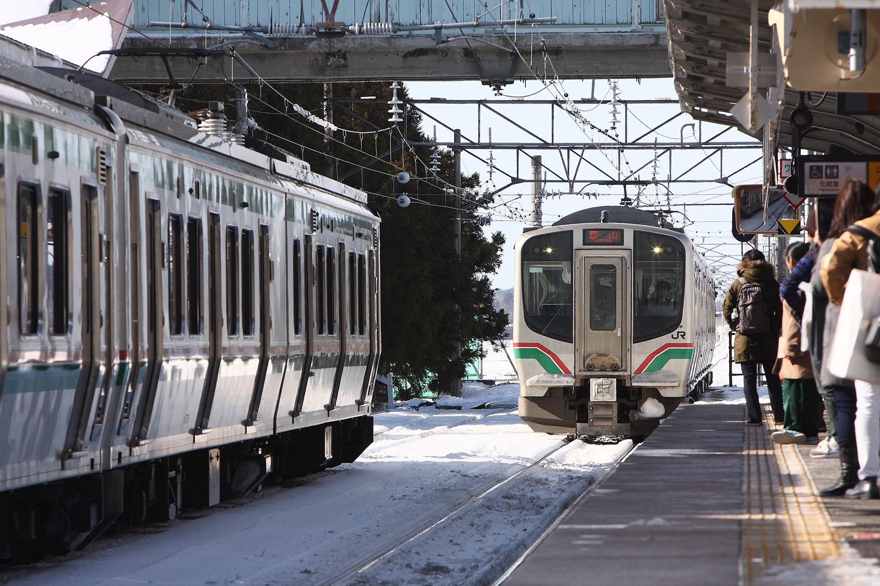 *磐越西線の起点となる郡山駅は、東北新幹線の郡山駅と接続しています。通過の新幹線は200km/h近くで走ってくるので、撮るのがなかなか大変です。