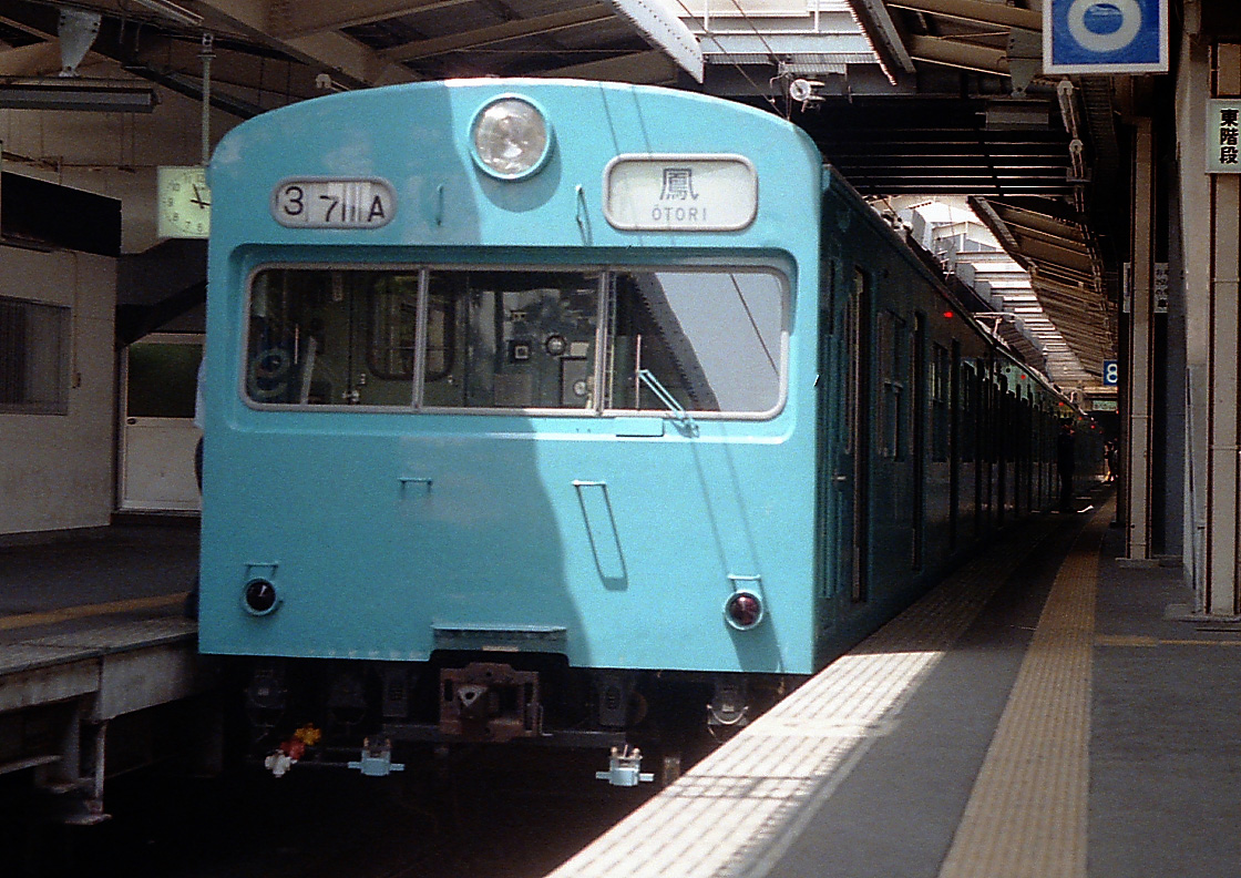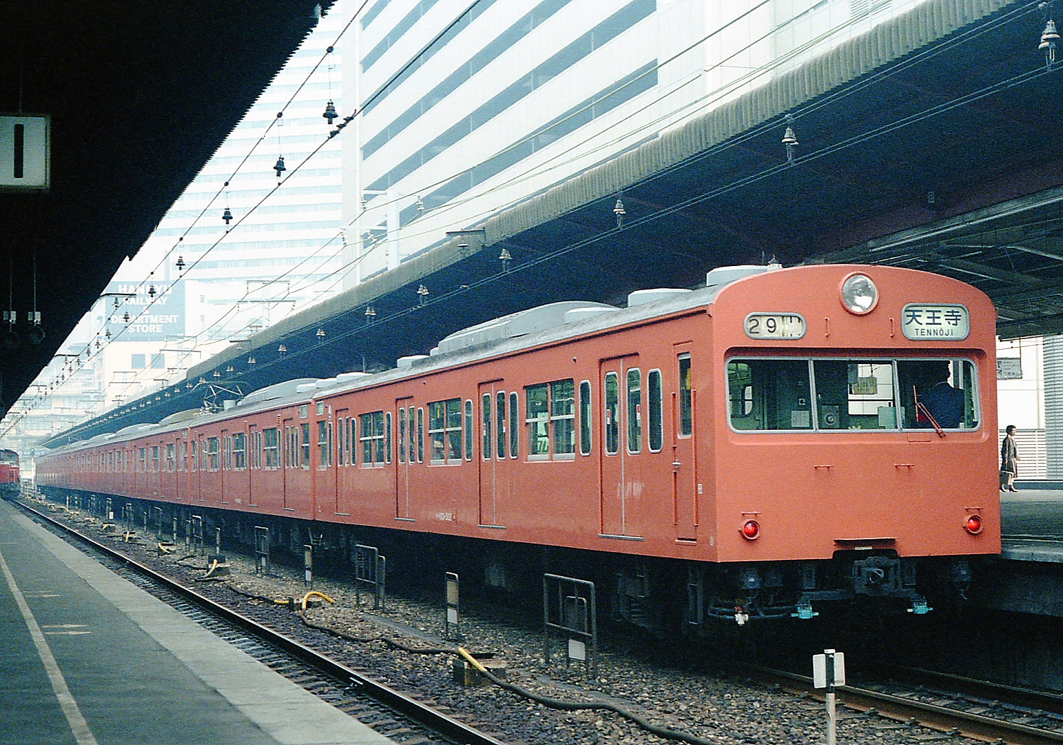 *大阪環状線の新型323系の登場とは直接的に関係がないが、阪和線の103系も同時期に引退。写真は国鉄時代の車両。天王寺駅の阪和線ホームにて。
