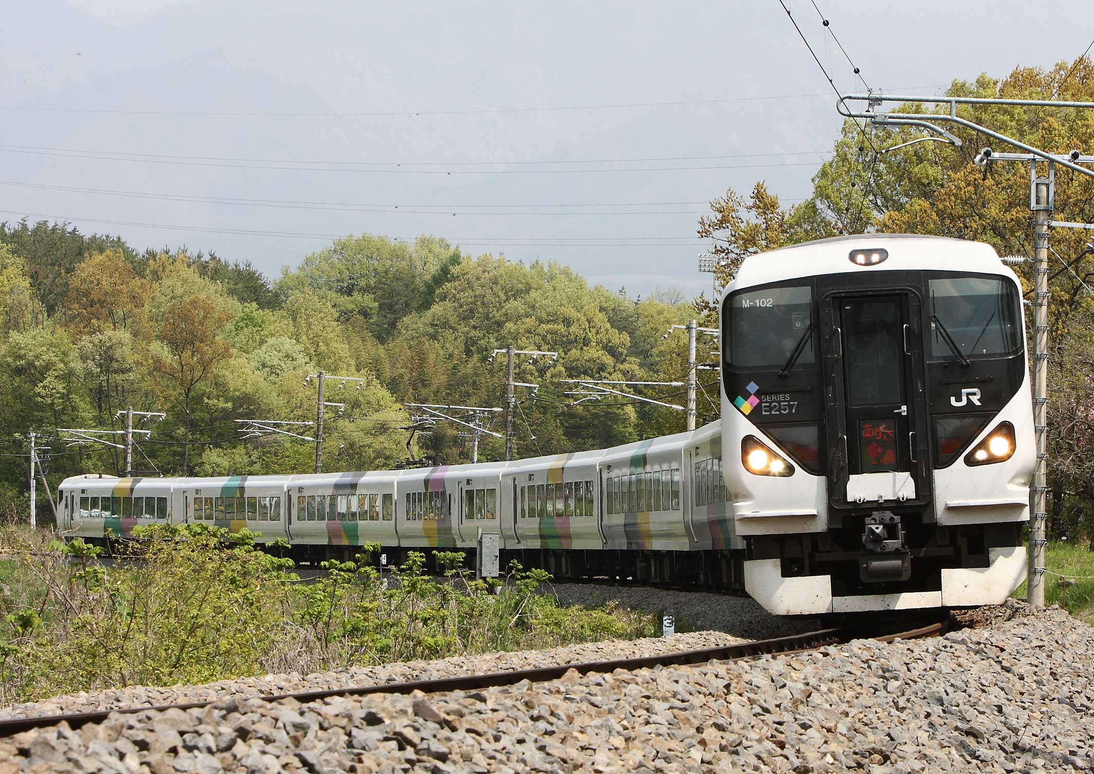 *2001年に特急「あずさ」の運用に入り、2019年3月のダイヤ改正で新型E353系にバトンを渡し、運用から外れる。